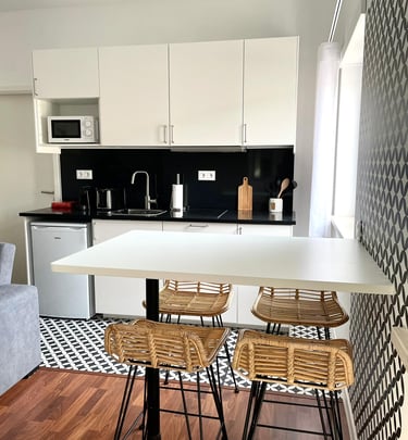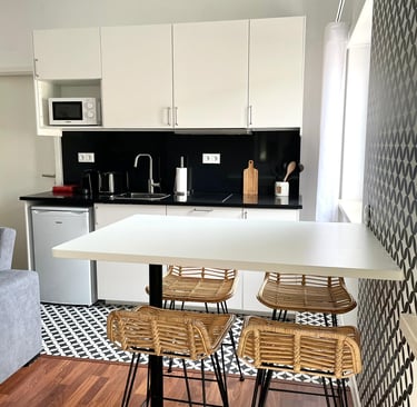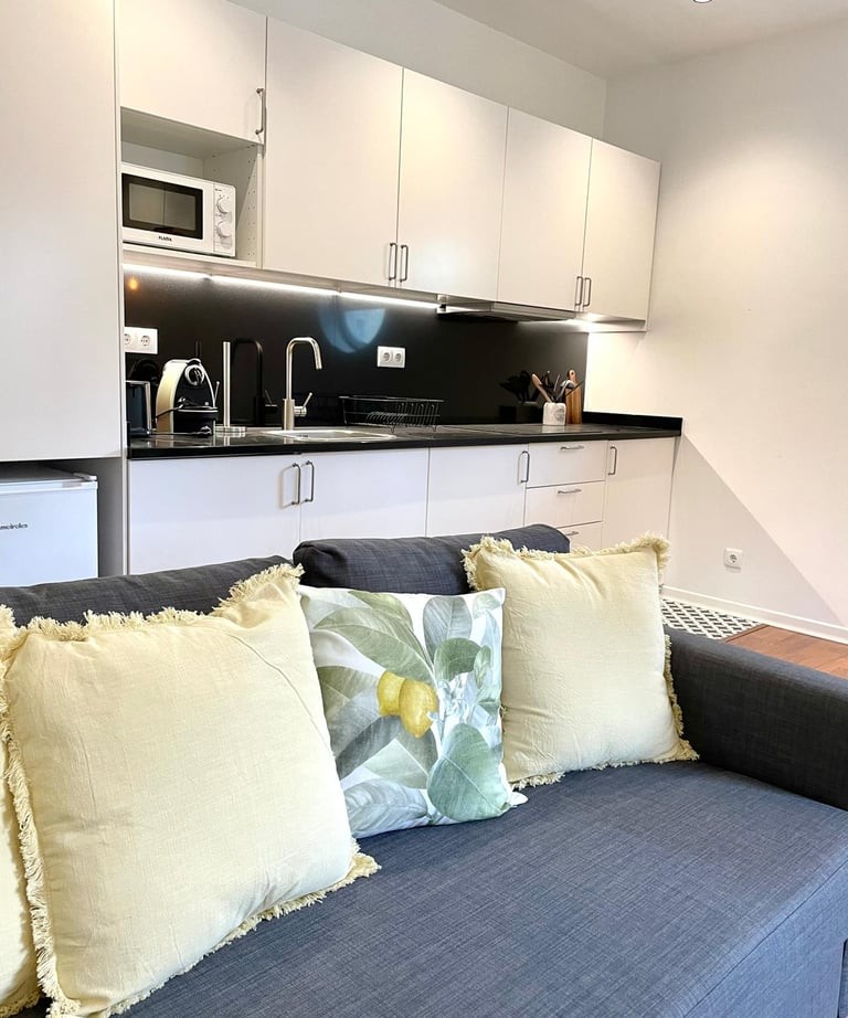 Os nossos apartamentos foram pensados para proporcionar uma estadia relaxante, com todas as comodidades necessárias: kitchinette equipada, Wi-fi gratuito, ar condicionado, espaços luminosos e uma decoração simples e elegante.